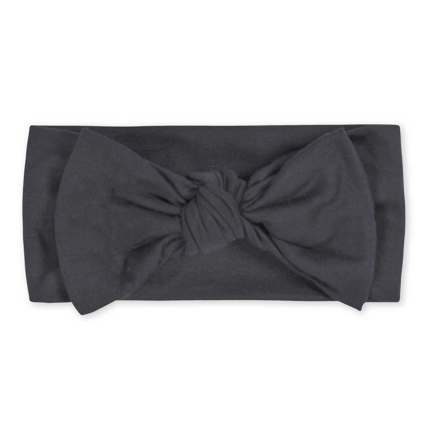 Designed for every season, our buttery soft collection of affordable rompers, sleepwear, Dresses and headbands will be their new wardrobe faves! We've partnered with Livaeco™ by Birla Cellulose to bring you and your little ones a more sustainably produced, environmentally-friendly viscose fiber collection made predominately from eucalyptus blended with spandex. This extremely soft solid charcoal gray headband features a sweet knotted bow, fits comfortably and is the perfect accesory for any occasion. High-quality, lightweight, breathable, durable fabric with the perfect amount of stretch for active babies and toddlers. Prints and solids coordinate with the rompers, sleepwear and Dresses plus, it's ideal for sibling matching. Gerber® quality, comfort, safety and value never goes out of style!