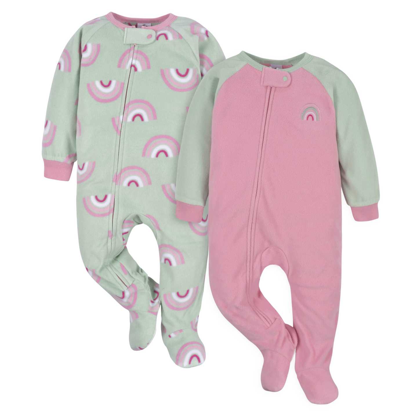 2-Pack Baby & Toddler Girls Green Rainbow Fleece Pajamas