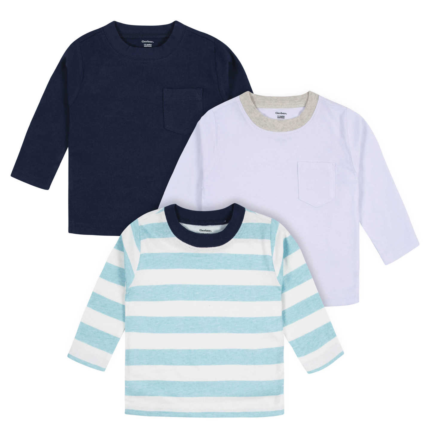3-Pack Baby & Toddler Boys Royal Blues Long Sleeve Pocket Tees