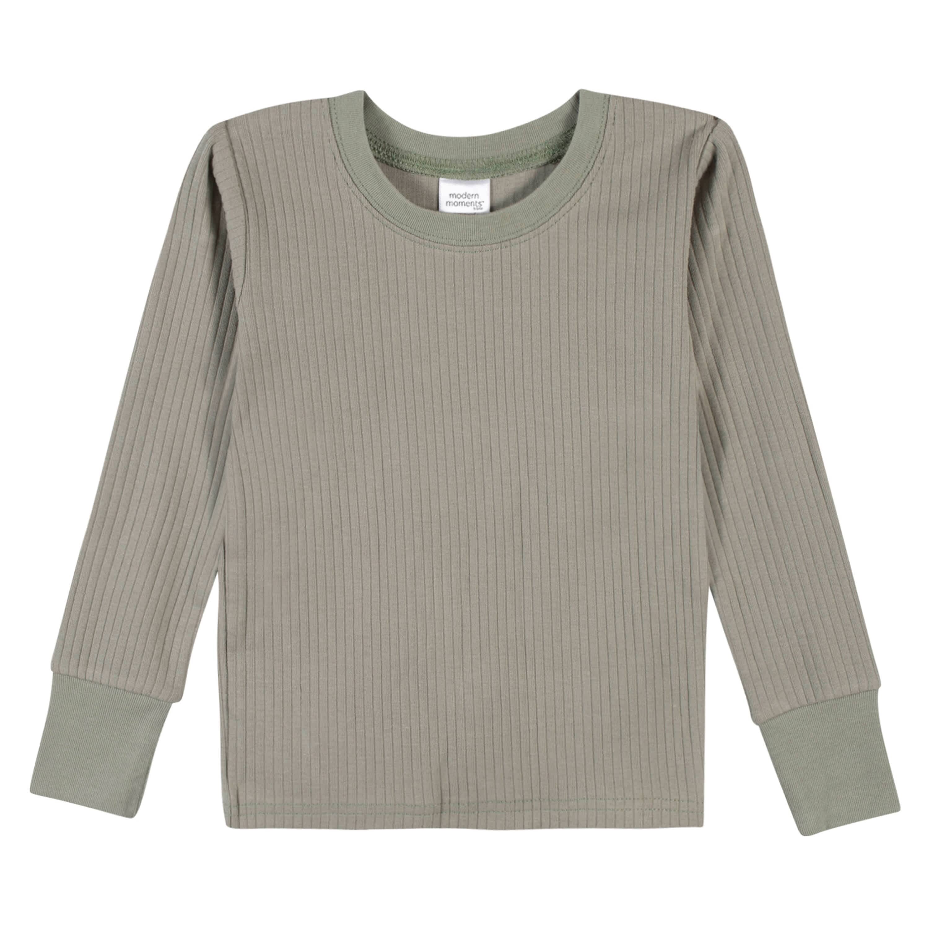 Modern Moments brings modern sophistication to your little one’s wardrobe. Our soft, comfortable pajama sets feature one long sleeve top, one short sleeve top, and two long pajama bottoms. We use STANDARD 100 by OEKO-TEX® certification on products tested in an independent laboratory against a list of more than 400 harmful substances, including PFAS. Designed for safety, our infant and toddler PJ’s feature a snug fit. This 4-piece set of infant and toddler pajamas includes one pair solid sage green and one pair black with tie dye stripes print.