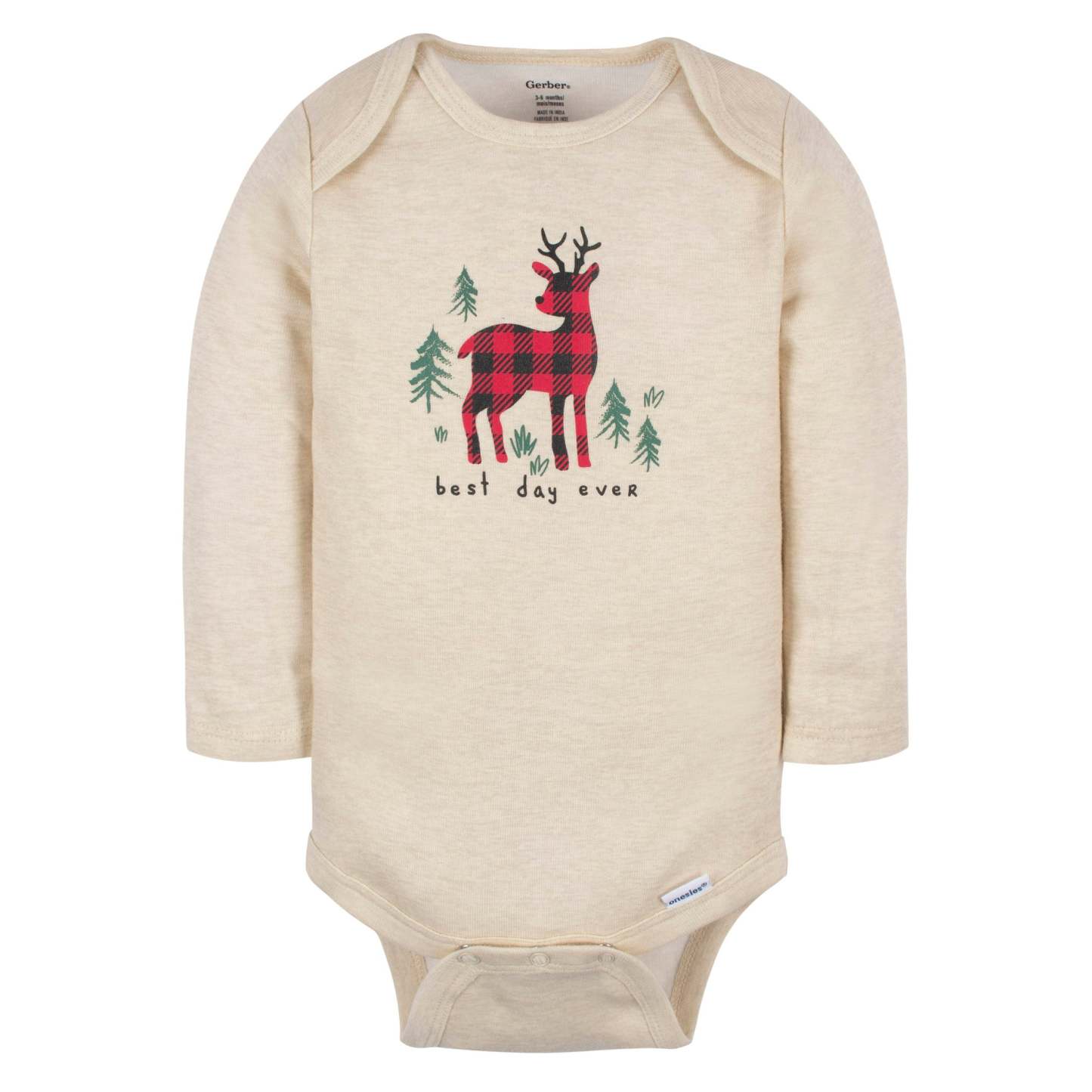 Gender-neutral Onesies® Brand Bodysuits with long sleeves and a winter feel are the perfect way to keep your little one cozy on long, chilly days. Designed for comfort, these are made from 100% cotton to be gentle on sensitive skin and feature comfort-stretch ribbing around the neck and legs. When the weather turns colder, add extra layers as needed. Getting ready for the day is easy with a simple pullup or pullover style and leg snaps for a secure fit. For fast diaper changes, simply undo the snaps, or use the shoulder flaps to remove the entire piece if necessary. Our essentials have been independently certified with STANDARD 100 by OEKO-TEX® so that you don’t have to worry about harmful substances in your baby’s wardrobe. This pack includes six moose themed Onesies® Bodysuits.