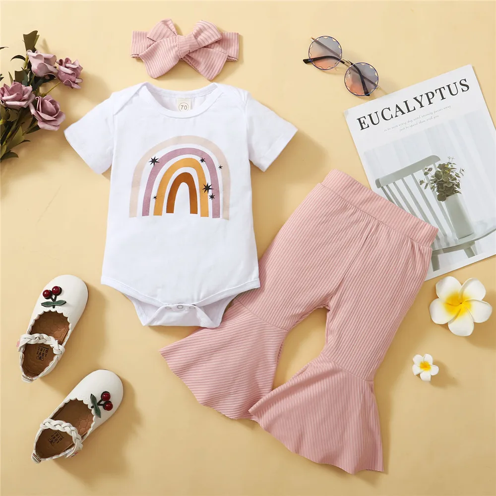 Conjunto Infantil Feminino Arco-íris c/ Calça Flare