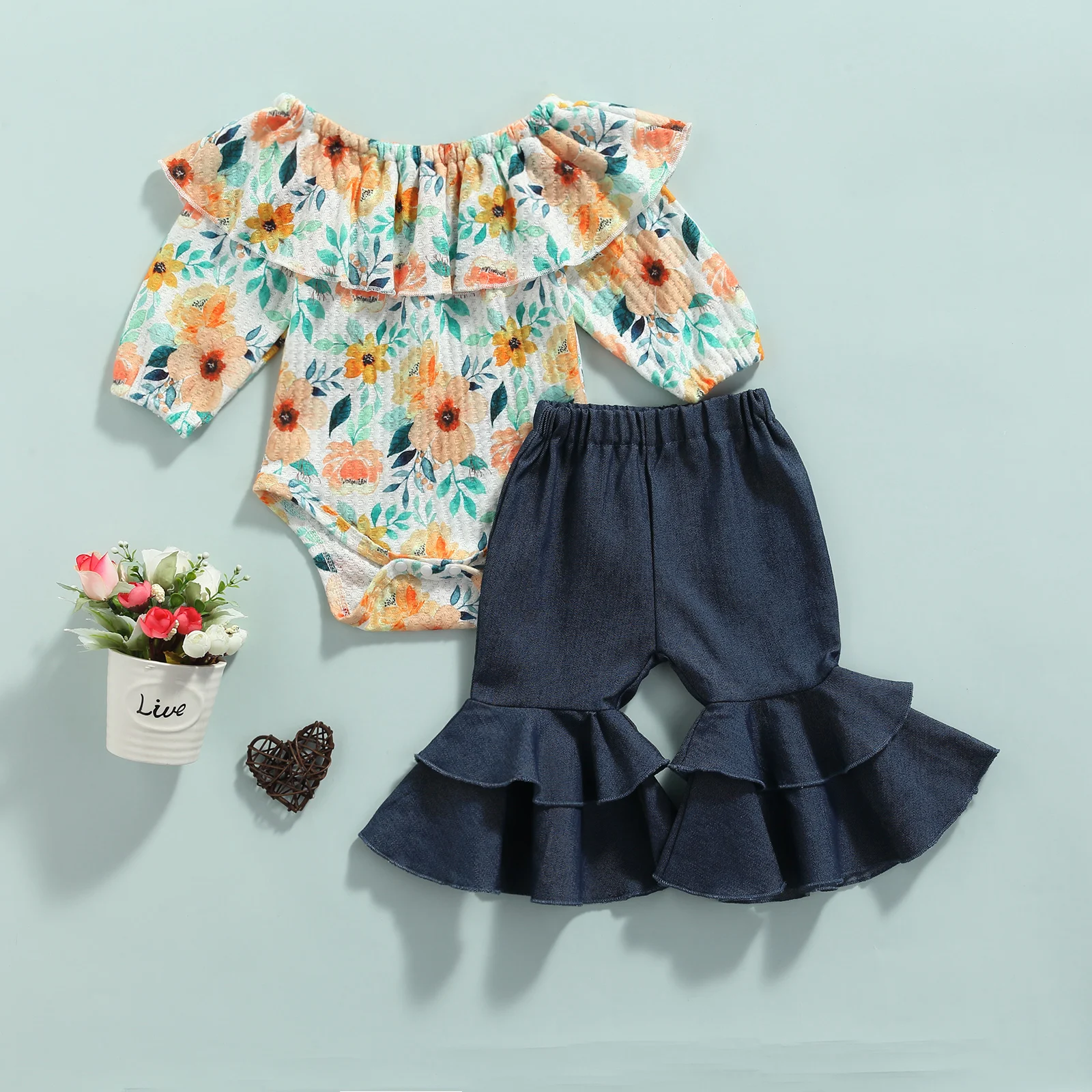 Conjunto Infantil Feminino Body Floral Calça Flair
