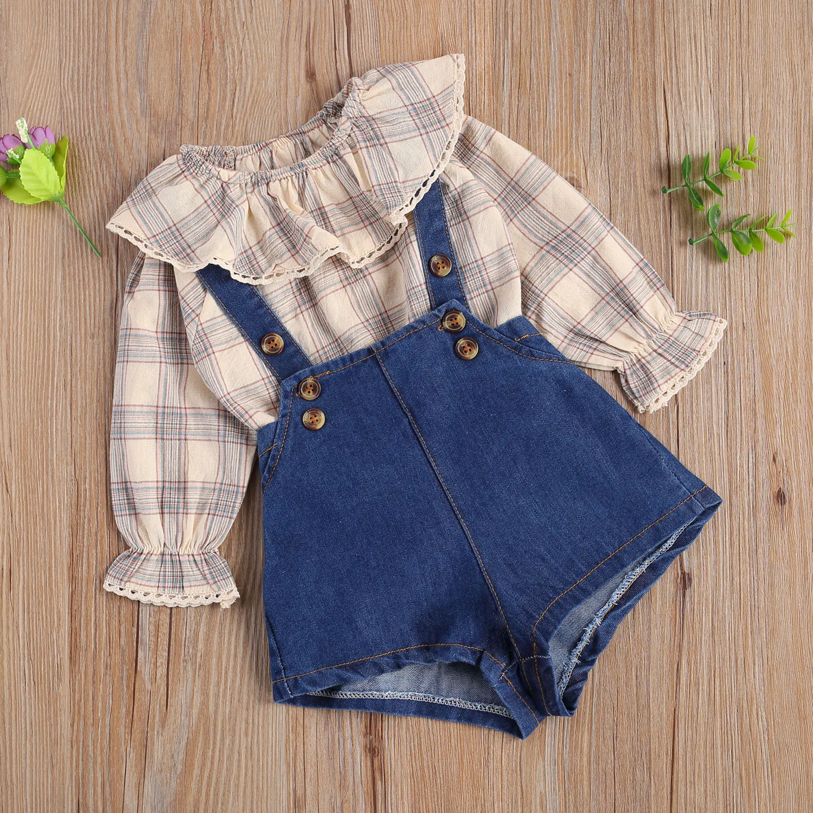 ✅Modelo: Conjunto Infantil Xadrez e Jeans
