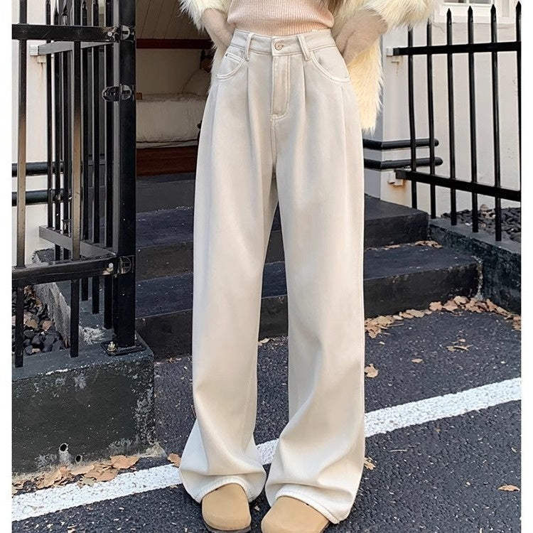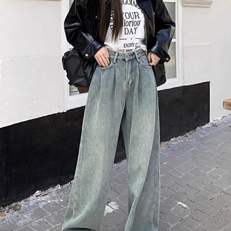Light Blue High Waist Slimming And Straight Versatile Mop Pants